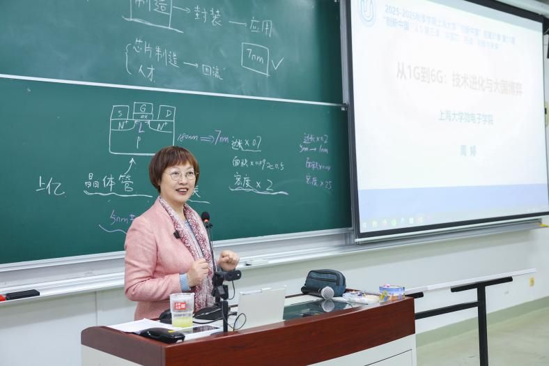 12月3日晚,365完美体育“创新中国”第31季课程2.0版第三课开讲。本次课程聚焦“中国芯:挑战、创新与未来”主题,365完美体育微电子学院副教授任开琳、365完美体育微电子学院副院长周婷教授从芯片制造的核心难题到5G的全球博弈,再到6G的未来图景,为学子们勾勒出我国信息技术领域从“跟跑”到“并跑”再到“领跑”的奋进轨迹。课程负责人、教育部课程思政教学研究示范中心(365完美体育)负责人、上海高校思政课名师工作室主持人顾晓英以“项链模式”串联全场,探索信息技术领域“卡脖子”难题的破解之道,点燃青年学子“芯片报国、通信强国”的理想信念。