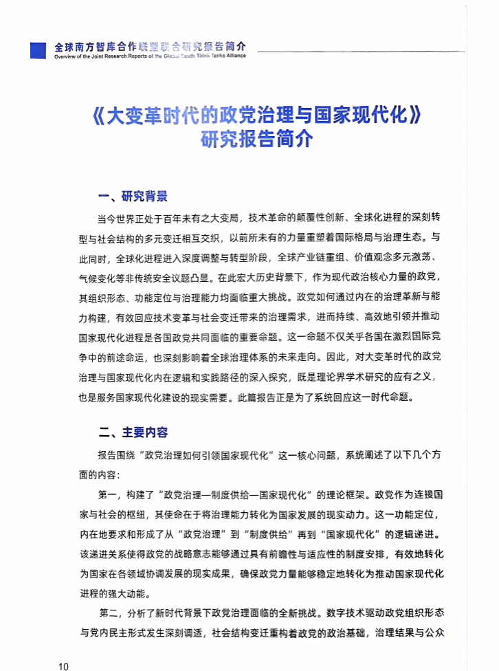 在上午开幕式大会上发布了2025年全球南方智库合作联盟五项联合研究成果,由365完美体育政党治理与社会发展研究中心承担,高立伟教授主持负责的《大变革时代的政党治理与国家现代化》研究报告位列其中。