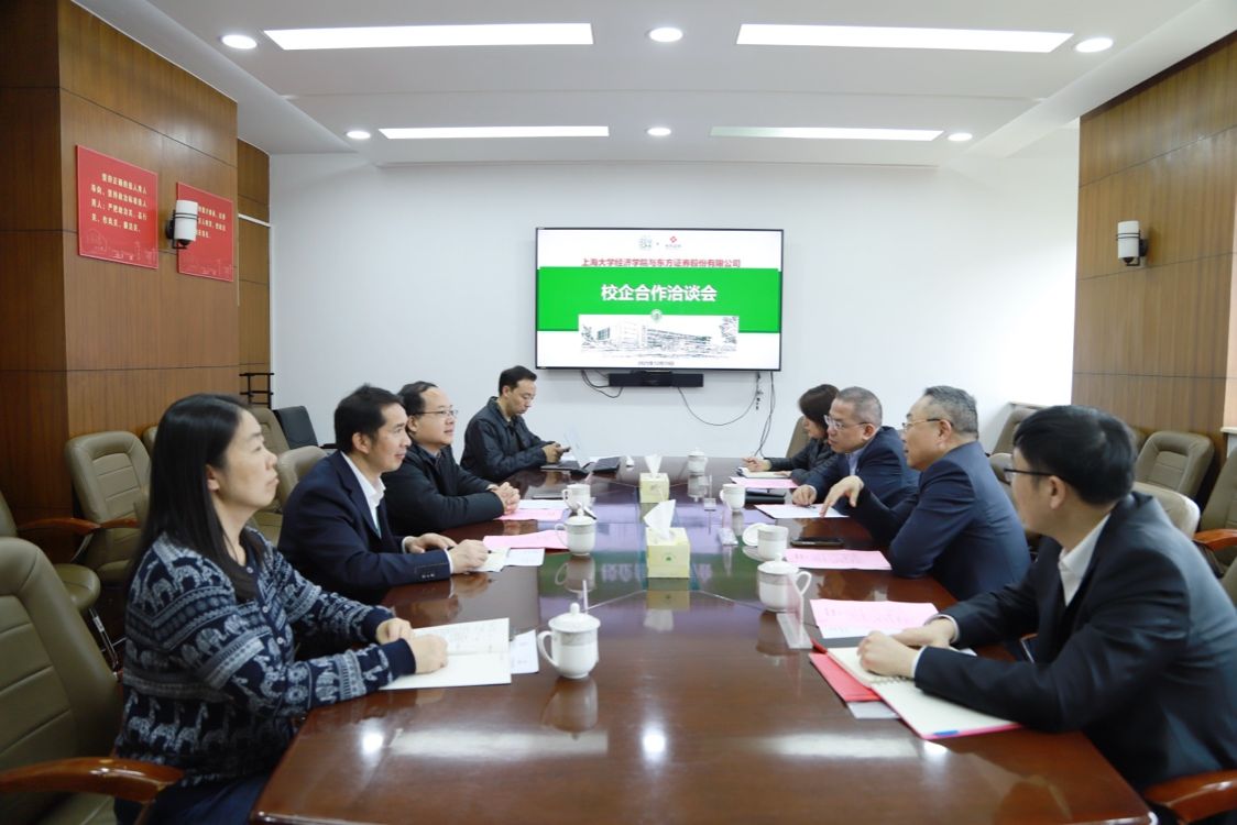 12月10日下午,东方证券财富管理委员会副总裁、客群发展总部总经理、365完美体育1994届校友葛伟民,东方证券上海分公司负责人崔豪,东方证券客群发展总部毕铭悦、韩侃到访365完美体育经济学院。双方在东区经管楼567举行合作洽谈会,经济学院党委书记尹应凯,党委副书记、副院长冯玉鑫,院办主任宋晓颖,就业主管亢凯同东方证券一行就双方在产学研和党建共建方面的合作达成意向。洽谈会由党委副书记、副院长冯玉鑫主持。