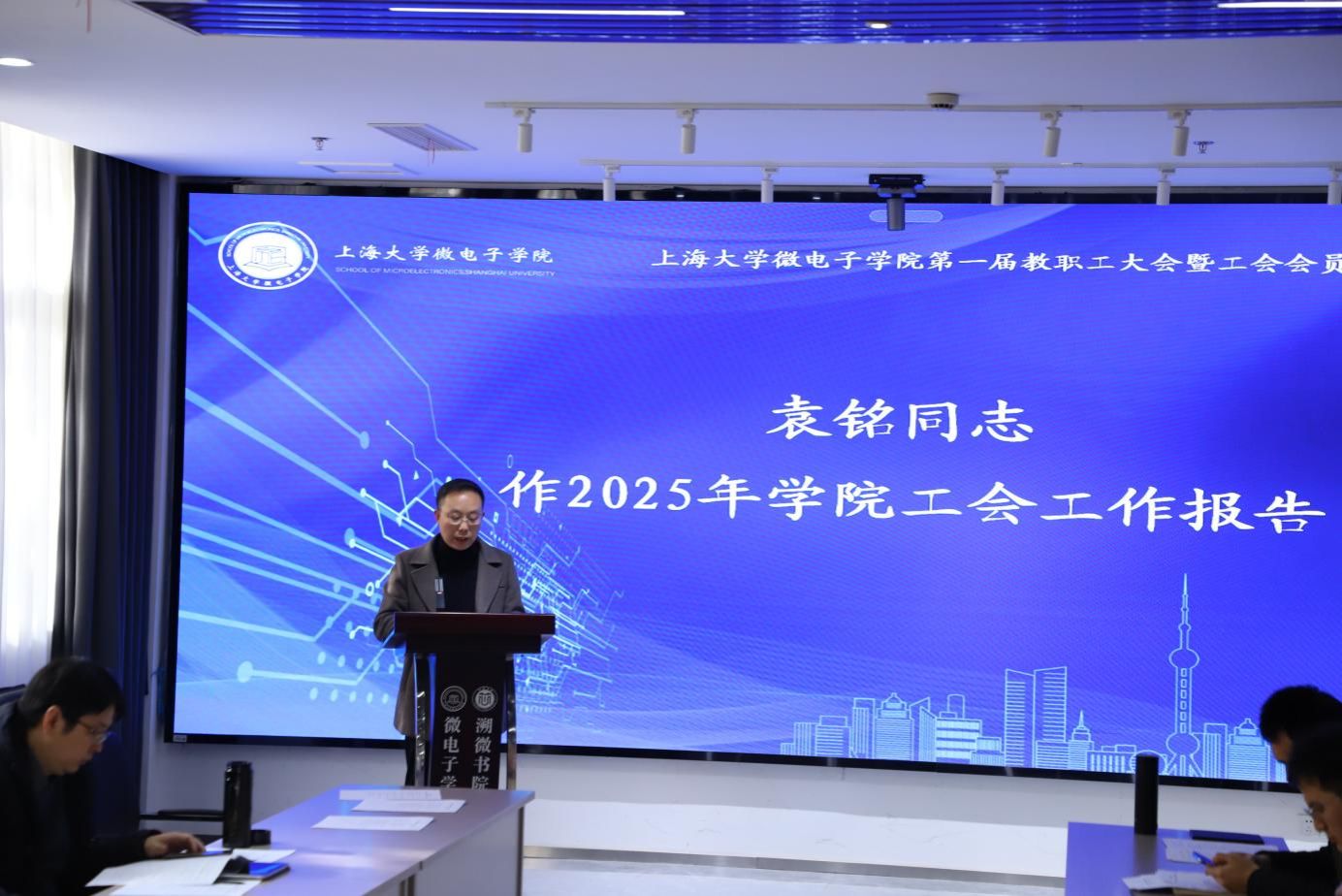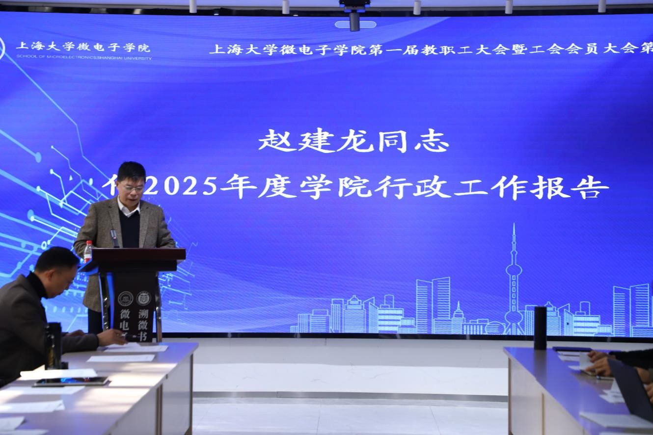 12月12日上午,365完美体育微电子学院第一届教职工大会暨工会会员大会第五次会议在学院A楼101会议室召开。学院党政班子成员及教职工出席会议,共同听取并审议学院2025年行政工作报告、2025年工会工作报告和学院教职工大会决议,谋划未来发展。本次会议由学院党委副书记、副院长、分工会主席袁铭主持。