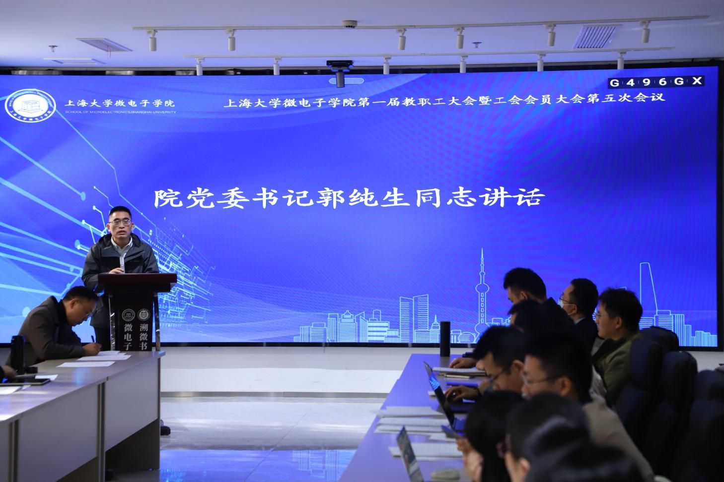 学院党委书记郭纯生在总结讲话中对大会的成功召开表示祝贺,并对全院教职工的辛勤付出表示感谢。郭纯生强调,本次大会是一次统一思想、凝聚共识的重要会议。他结合国家战略需求与学院发展实际,对下一步工作提出明确要求:一要结合国家和上海市集成电路国家战略,高标准、高质量谋划好微电子学院“十五五”规划,抓住发展关键期,助力微电子学院奋力一跳。二要聚焦立德树人根本任务,深化1+3+N集成电路人才培养改革,提升服务集成电路产业的人才供给质量。三要拓展产学研深度合作,加强与集成电路龙头企业的深度合作,为人才培养、科研项目和产业转化创造更大空间。四要大力弘扬“为国担当、勇为尖兵”的使命精神,全体教职工以此次大会为新的起点,实干担当,锐意进取,共同谱写学院高质量发展的新篇章。