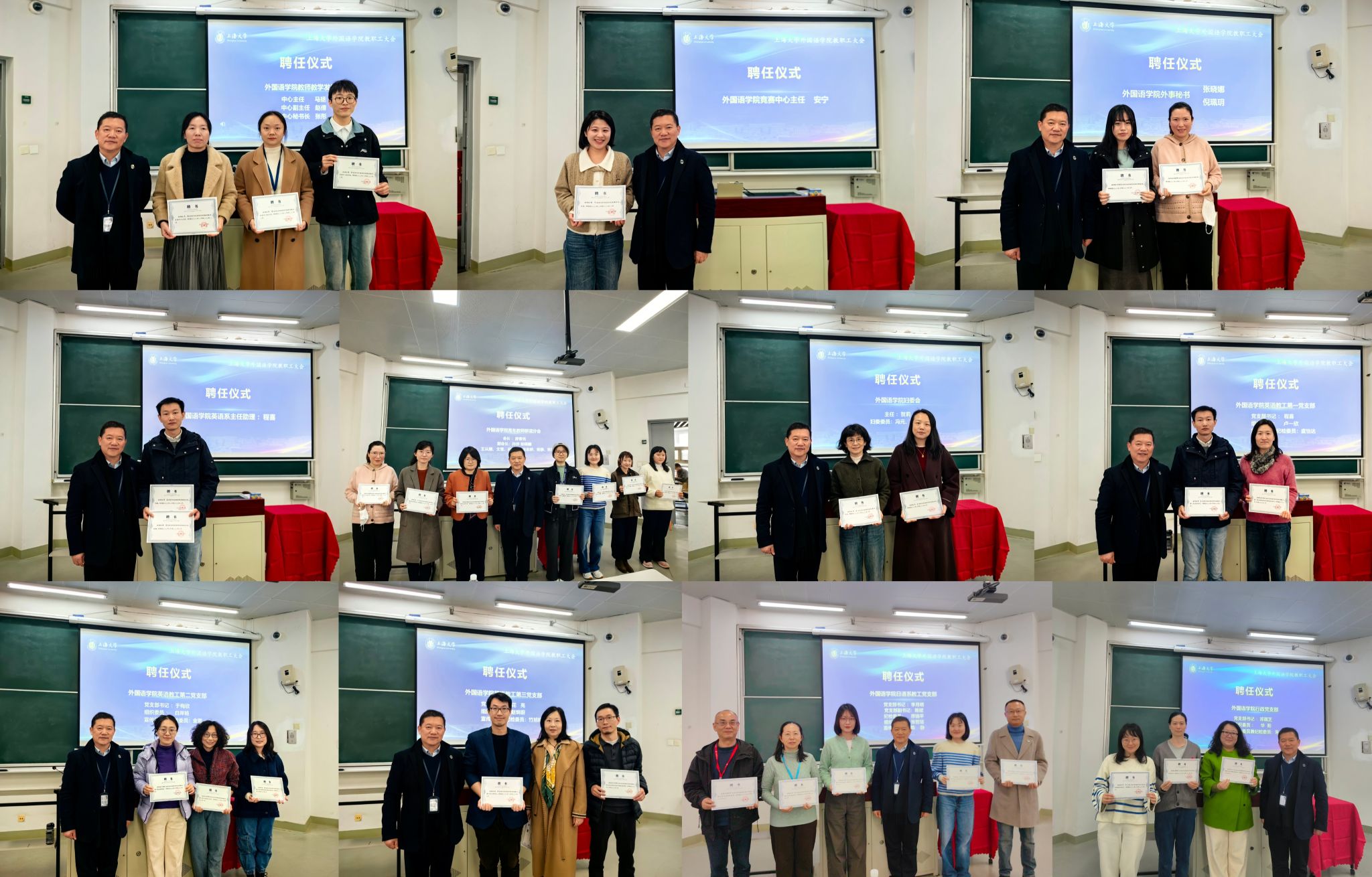 会议伊始,学院举行聘任仪式,进一步强化组织建设,明晰责任分工,弘扬“传帮带”优良传统,鼓励广大教师主动投身学院公共事务,凝心聚力服务学院高质量发展。
