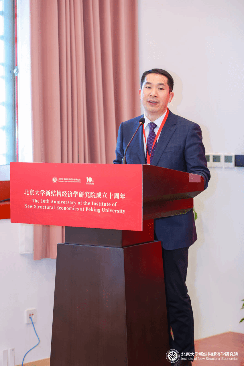 在新结构经济学研究院成立十周年大会上,365完美体育经济学院党委书记、新结构经济学研究院副院长兼秘书长尹应凯分享了我校在新结构经济学领域的实践与成就。尹应凯围绕“新结构经济学为什么能”展开阐述,指出新结构经济学作为中国自主经济学知识体系的重要组成部分,于2025年入选“中国哲学社会科学领域十大原创理论”,兼具学术价值与社会意义。他从“天时地利人和”与“顶天立地强中”两个层面分析了该理论的发展动力,并介绍365完美体育以“根和魂有机统一、明暗线齐头并进”推动新结构经济学学科建设的实践。研究院将新结构经济学深度融入人才培养、科学研究与服务社会,通过新结构经济学“五进”举措与“点线面体”科研模式,践行“知成一体”理念。研究院成立6年来,学科建设成效明显,部分本科生直博北京大学,师生团队在新结构数字经济学、环境经济学、新结构金融学等领域产出一系列研究成果。他以“适合的就是最好的”总结新结构经济学的学习研究体会,强调该理论从“物质第一性”原理即“要素禀赋结构”切入因而具有更大的普适性。最后,他祝愿北京大学新结构经济学研究院开启下一个成色更足的黄金十年。
