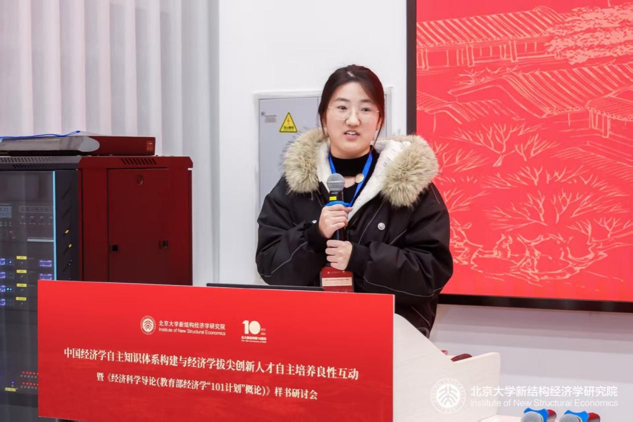 在《新结构经济学刊》论文研讨会上,我院师生积极参与学术交流。朱欢老师对《银行业结构与金融科技发展—基于弥合信贷缺口视角》进行点评,在肯定其视角新颖、实证严谨的同时,也从理论机制、变量度量、内生性等方面提出完善建议,并进一步从新结构经济学视角探讨金融科技在“最优金融结构”中的角色,为研究拓展了思路。硕士研究生武鑫鑫汇报了题为《禀赋结构匹配度对企业持续性创新的影响研究》的论文,从要素禀赋结构匹配的视角探讨对企业创新的影响,并结合机制分析与政策启示,为产业政策制定提供了参考。博士生申里昂对武鑫鑫的论文进行评议,在肯定其研究价值与实证规范性的同时,也从概念界定、机制链条、稳健性检验等方面提出深化建议。武鑫鑫还对伦敦大学学院管理学院李劼巍的汇报论文“Long-term Manufacturing Industrial Policy and Entrepreneurship”进行点评,在认可其研究贡献的基础上,从变量衡量、政策适配性、长期影响等角度提出若干探讨方向。
