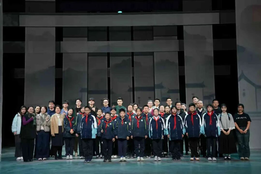 演出后,上海电影学院“剧述长歌·科学家精神宣讲团”面向基础教育集团的中小学生开展了科学家精神的主题宣讲。主讲人结合钱伟长先生“弃文从理、为国攻坚”的人生轨迹,深入阐述了爱国、创新、求实、奉献、协同的科学家精神内核。号召青年一代沿着先贤的足迹,将个人奋斗汇入国家强盛、民族复兴的时代征程。以“片场+思政”的育人理念,推动“大中小思政一体化”,让舞台艺术与思政教育深度融合,进一步强化了科学家精神的感召力。