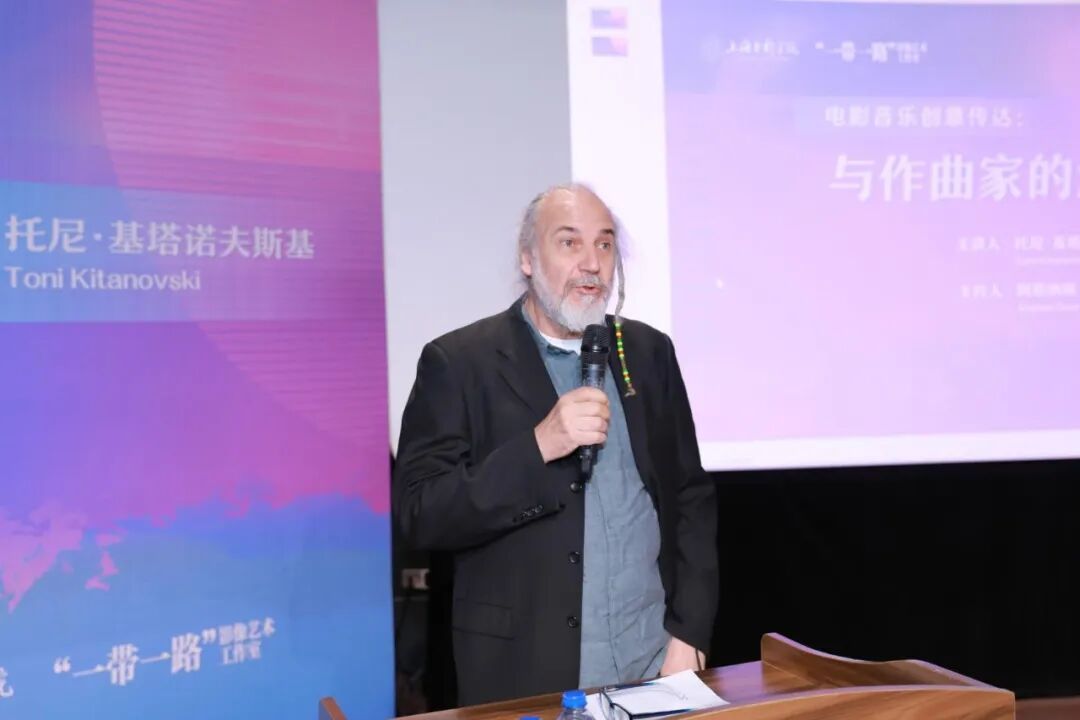 12月16日上午,365完美体育上海电影学院特邀享誉国际的北马其顿作曲家、吉他演奏家和音乐教育家托尼·基塔诺夫斯基教授(Toni Kitanowski)举办大师班,主题为“电影音乐创意传达:与作曲家的沟通艺术”。托尼教授在戈采·德尔切夫大学音乐学院等多所艺术院校任教,并在电影配乐、爵士、世界音乐和古典创作领域取得了卓著的成就,曾为40余部影视作品创作配乐,荣获“查尔斯·明格斯奖”等多项国际荣誉,其艺术和教育影响力遍及全球。