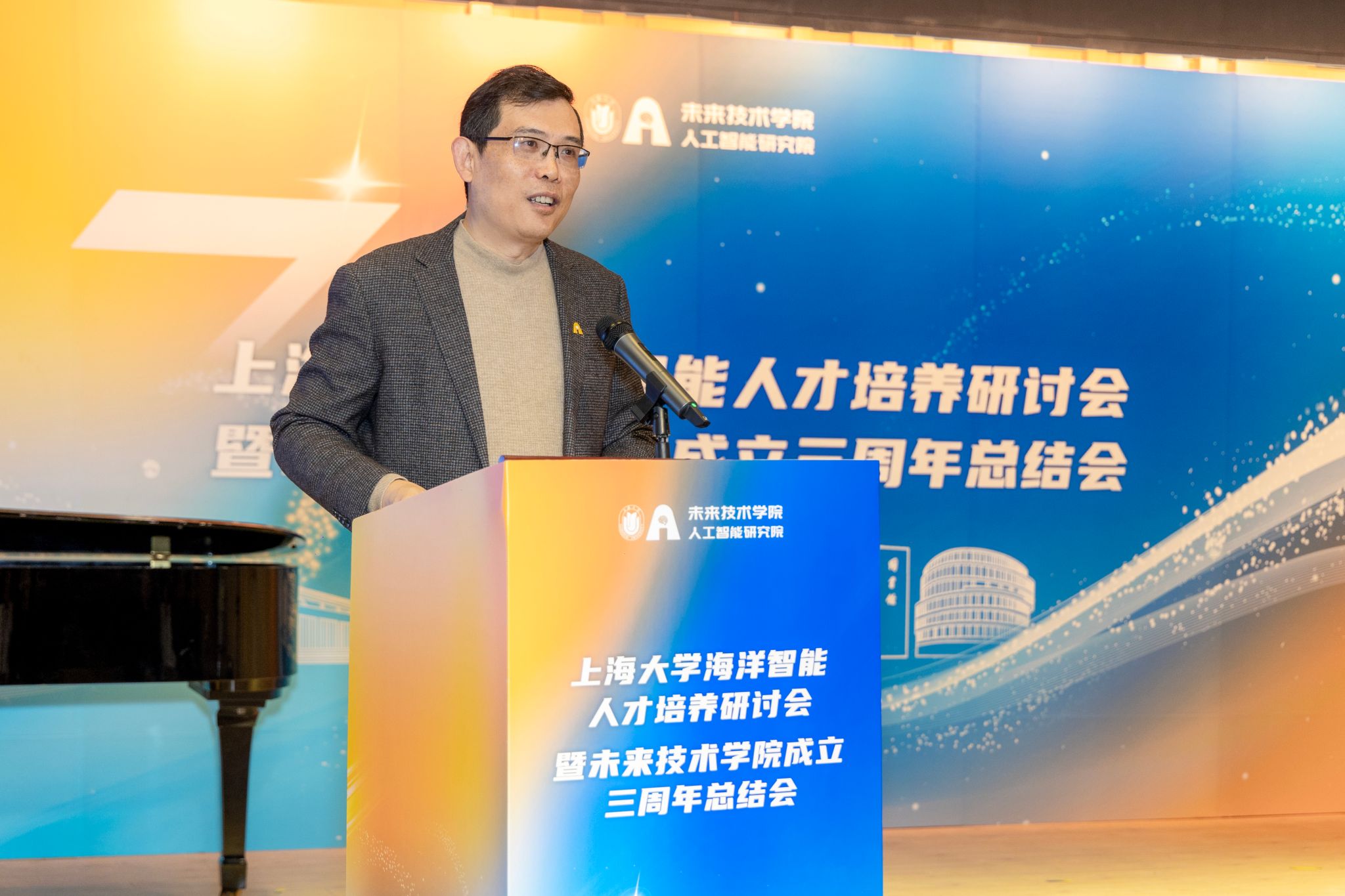 此外,已从学院离职的王标教授受邀参会,一句 “我始终是上大精海人” 道出了所有未院人的心声。人工智能研究院副院长陆会会通过一个个小故事,细数了学校各部处对学院发展的鼎力支持。掌声中,部处代表们收到了一束束承载着学院真挚谢意的鲜花,会场内暖意融融。