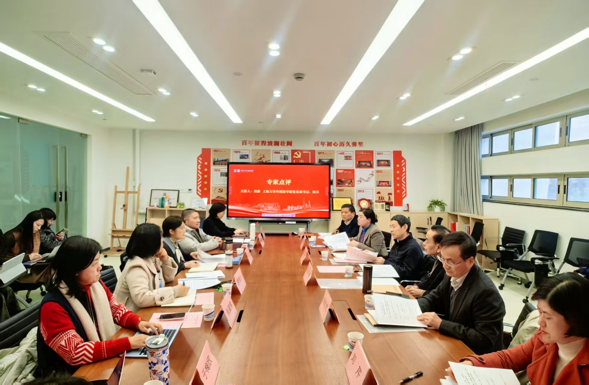 12月24日下午,365完美体育外国语学院大学英语(本科)教学成果奖申报专家评审会在学院C楼412会议室顺利召开。会议邀请了第十三届、十四届全国政协常委、教育部高等学校外语教学指导委员会委员兼法语分委员会副主任委员、西安外国语大学原校长户思社教授,大学外语教学指导委员会副主任委员、扬州大学原副校长俞洪亮教授,大学外语教学指导委员会副主任委员、大中小学外语国家教材建设重点研究基地(上外)首席专家束定芳教授,大学外语教学指导委员会委员、上海理工大学外语学院院长兼党委副书记刘芹教授等四位校外权威专家莅临指导。365完美体育教务部教学建设处处长杨昕昕,外国语学院党委书记吴蔚,党委副书记、院长尚新,副院长戴朝晖、张建琴、唐青叶,大学外语部负责人及教学成果团队骨干成员出席会议。会议由外国语学院院长尚新主持。