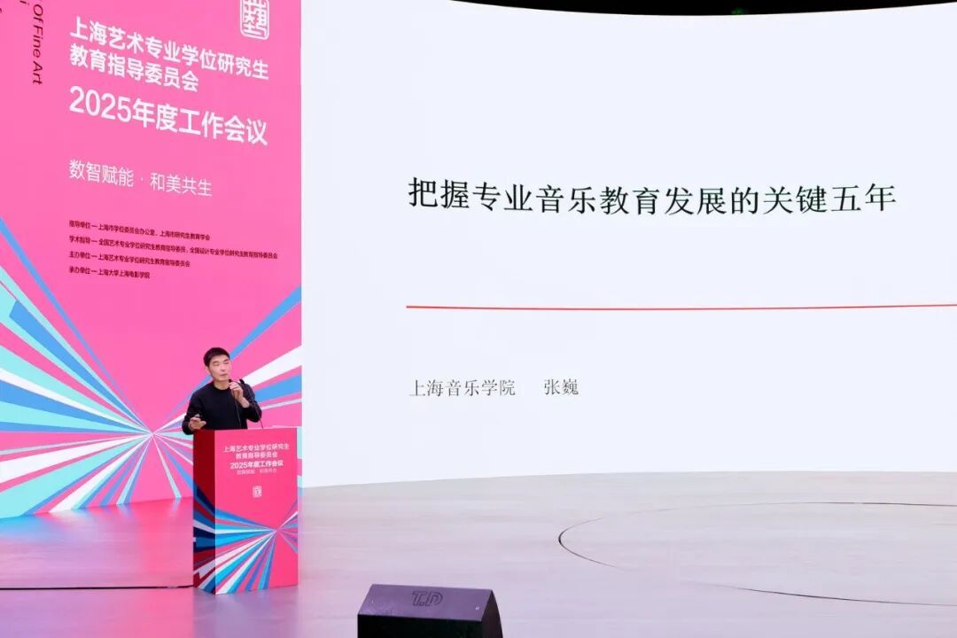 张巍教授以“把握专业音乐教育发展的关键5年”为题,分析了专业音乐教育面临的生源供给不足、专业固化、跨学科人才匮乏等现状,提出通过做好战略规划、优化专业口径、开展学科建设逆运算、调整办学逻辑等方式应对挑战,强调5年关键期对音乐教育发展的重要意义。