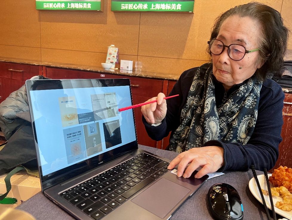 慰问组与老人们亲切交谈,细致询问他们的身体状况、生活起居与实际需求,叮嘱他们保重身体、安享晚年。老同志们也欣然分享往事,回忆起归国奉献的岁月与工作点滴,并谈及退休后对国家发展、社区建设和学校近况的持续关注。现场气氛温馨活跃:容月嫦老师兴致盎然地弹奏钢琴,悠扬旋律中流淌着对生活的热爱;俞丽和老师则谈起近期为初中生辅导数学的经历,言语间洋溢着传递知识与温暖的欣慰;更令人感动的是,年逾九十的傅克诚先生仍心系事业,专门通过PPT向大家讲解近期的工作进展,展现出老一代学人矢志不渝的钻研精神。