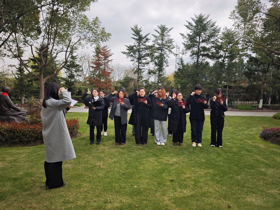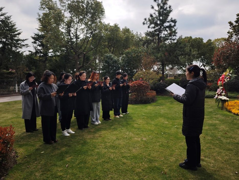 活动最后,激昂的《国际歌》旋律在烈士墓前响起,全体党员齐声高唱。百年前,瞿秋白同志翻译的“英特纳雄耐尔就一定要实现”的誓言,在新时代青年党员的歌声中焕发新的生机与活力。歌声里,是对革命理想的坚定信仰,是对红色薪火的赓续传承,更是对砥砺初心、再启新程的庄严宣告。