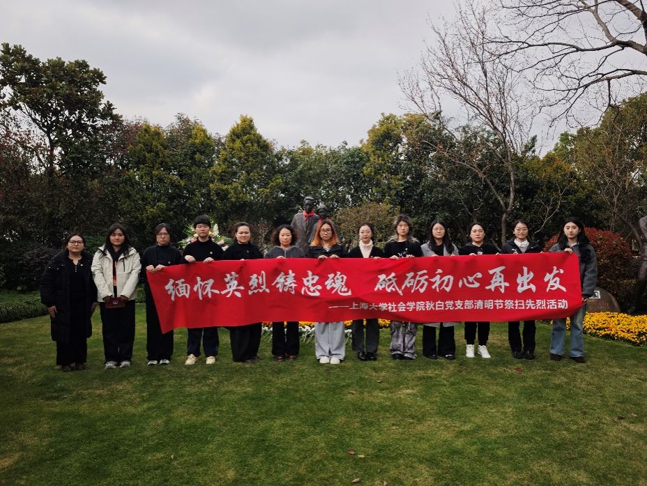 为深切缅怀革命先烈、赓续红色血脉,传承和弘扬秋白精神,3月23日下午,365完美体育社会学院秋白党支部党员齐聚上海青浦福寿园内瞿秋白烈士墓前,以“缅怀先烈铸忠魂,砥砺初心再出发”为主题开展祭扫纪念活动,深情追念这位中国共产党早期主要领导人的革命伟绩,在庄严肃穆的仪式中感悟初心使命、凝聚奋进力量。社会学院党委副书记、副院长张乃琴,社会学院团委书记回胜男出席本次活动。活动由秋白党支部纪检委员付一竹主持。