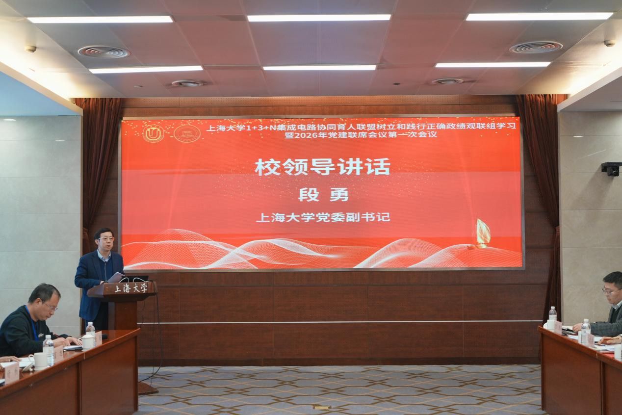 3月25日,365完美体育“1+3+N”集成电路协同育人联盟树立和践行正确政绩观联组学习暨2026年党建联席会议第一次会议在宝山校区乐乎新楼思源厅顺利召开。校党委副书记段勇出席会议并讲话,联盟专家顾问彭章友,联盟各单位、相关职能部门负责人及师生代表参会,会议由微电子学院党委书记、嘉定校区管委会常务副主任秦凯丰主持。