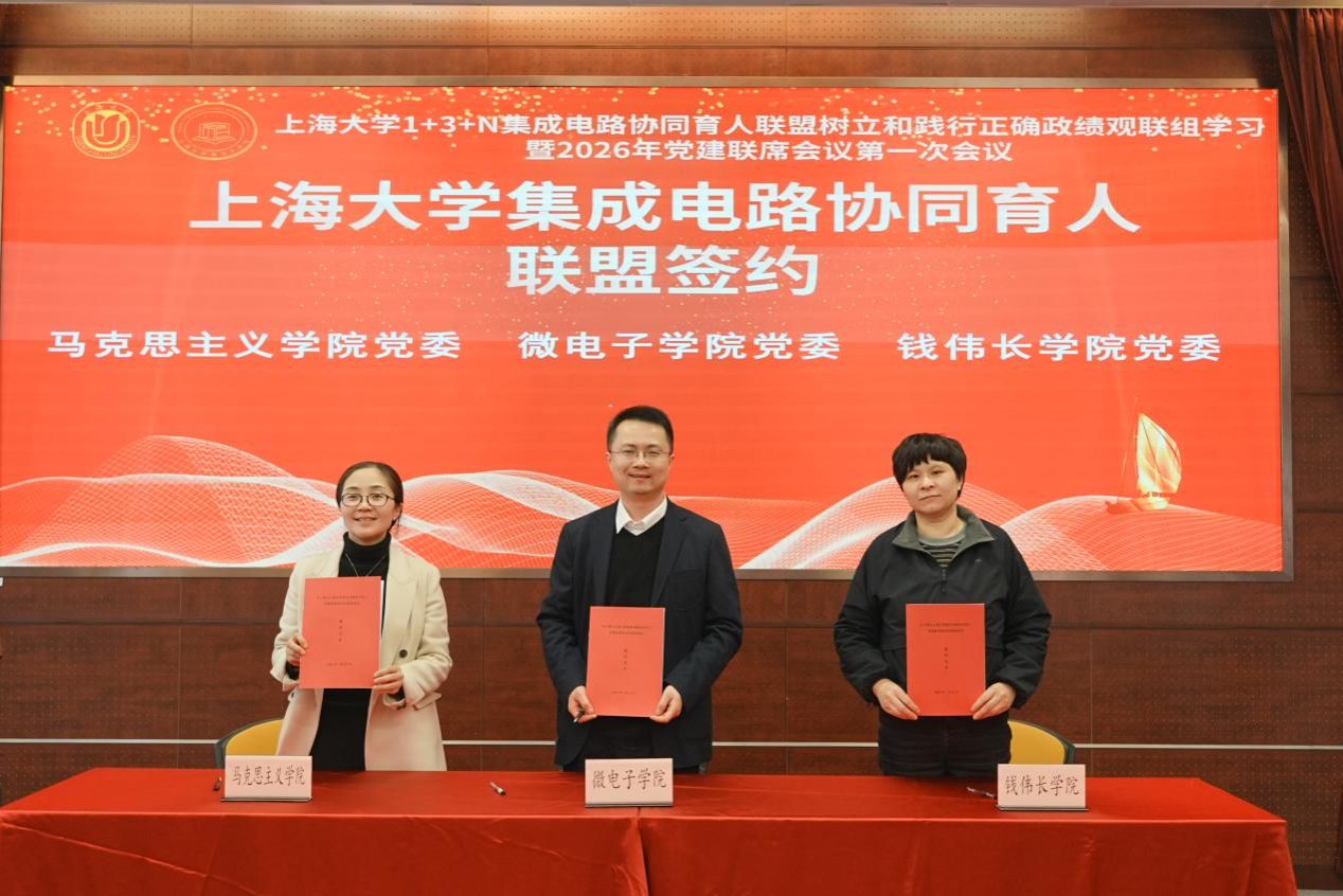 随后,举行了365完美体育集成电路协同育人联盟新增单位签约仪式,微电子学院党委、马克思主义学院党委、钱伟长学院党委现场签约。至此联盟已增加到13家单位,着力构建党建引领、资源共享、优势互补的育人格局。