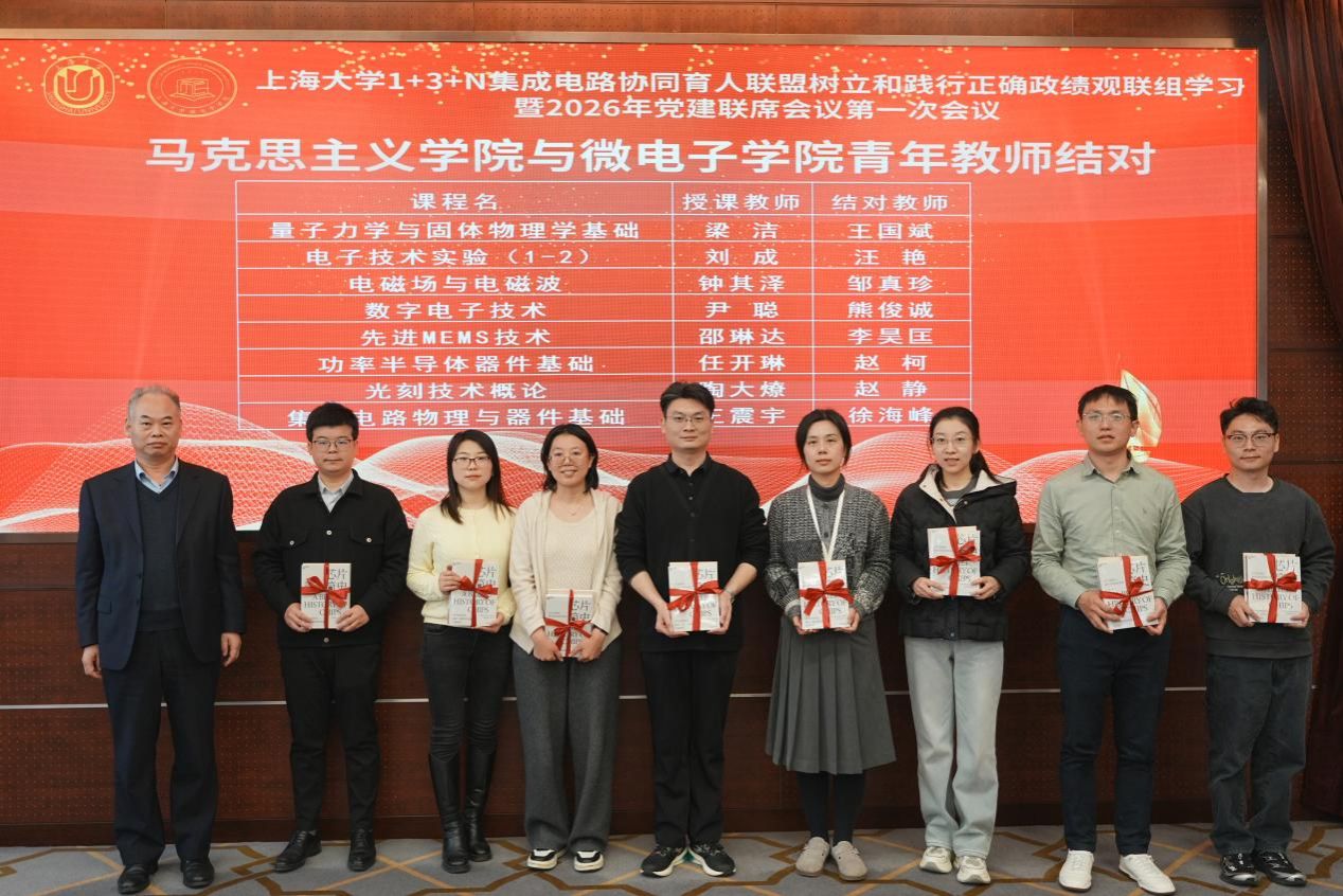 为加强联盟内思政课程与课程思政协同建设,微电子学院与马克思主义学院青年教师结对。联盟专家顾问,原教务部常务副部长彭章友为结对教师发放学习书籍,通过青年教师结对的方式加快探索将家国情怀、产业安全、科学家精神、工匠精神、法治意识融入教学全过程,打造“中国芯路”等课程思政品牌课程,形成富有集成电路领域专业特色的案例,在授课中增强“创新中国”案例库的供给,以党建引领师资共建,促进跨学科教师成长。