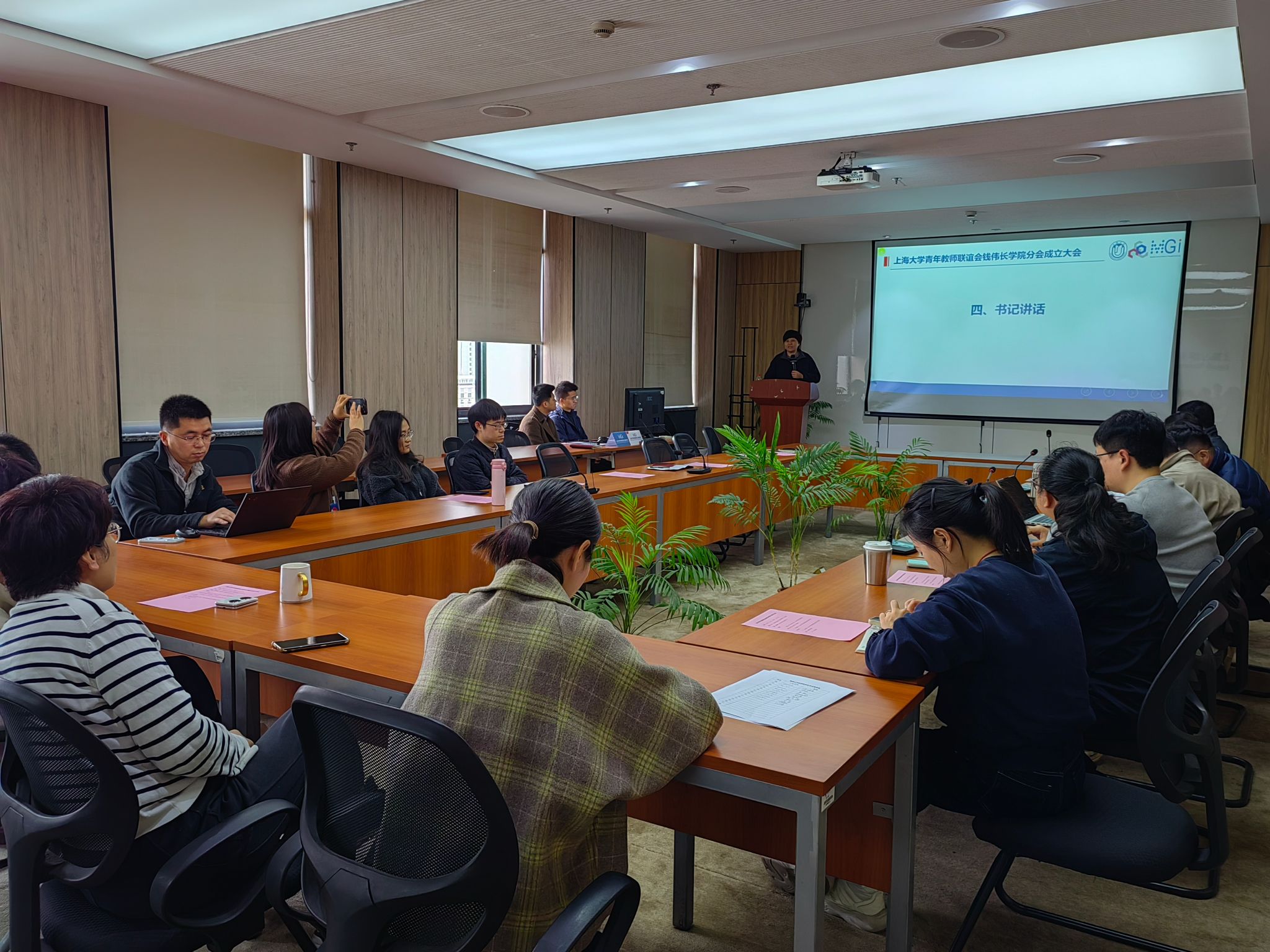 孙琦琰书记代表学院党委,向大会的成功举办致以热烈祝贺。她首先介绍了钱伟长学院青联分会成立的背景,并分析了两院青年教师的年龄结构。她指出,钱伟长学院和材料基因院的发展离不开青年教师这一中坚力量,青联会的成立具有重要而深远的意义。她强调钱伟长学院青联分会要着力发挥三方面作用:一是成为凝聚青年力量的“粘合剂”,多组织开展有利于增进青年交流的活动;二是成为推动青年发展的“助推器”,助力青年教师提升教学科研水平和育人能力;三是成为联结青年师生的“连接点”,通过分享自身成长经历,引导和影响两院学生全面发展,为钱伟长学院和材料基因组工程研究院的高质量发展贡献青春力量。(撰稿:许富杰;摄影:刘佳)
