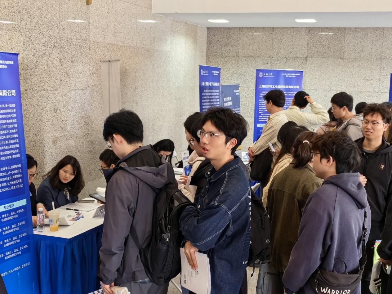 3月27日,365完美体育2026年集成电路领域春季专场招聘会在宝山校区图书馆报告厅圆满举行。本次招聘会由上海市教育委员会、上海市经济和信息化委员会指导,365完美体育主办,上海集成电路行业产教融合就业育人联盟、365完美体育“1+3+N”集成电路协同育人联盟、365完美体育集成电路行业校友会联合承办,微电子学院(上海微电子产业学院、溯微书院)牵头,联合通信与信息工程学院、机电工程与自动化学院、材料科学与工程学院、卓越工程师学院、理学院、力学与工程科学学院等多学院共同协办,得到了上海市集成电路行业协会、嘉定区经济委员会、宝山区科学委员会、临港新片区党群工作部、临港新片区人才发展服务中心、临港集成电路产业集群党委、上海市学生事务中心等数十家单位的大力支持。活动以全面落实就业优先战略、深化产教融合协同育人为核心,精准对接国家集成电路产业发展战略与上海产业布局需求,为高校毕业生与集成电路企业搭建了高效精准的供需对接平台,为产业高质量发展注入青春人才动能。