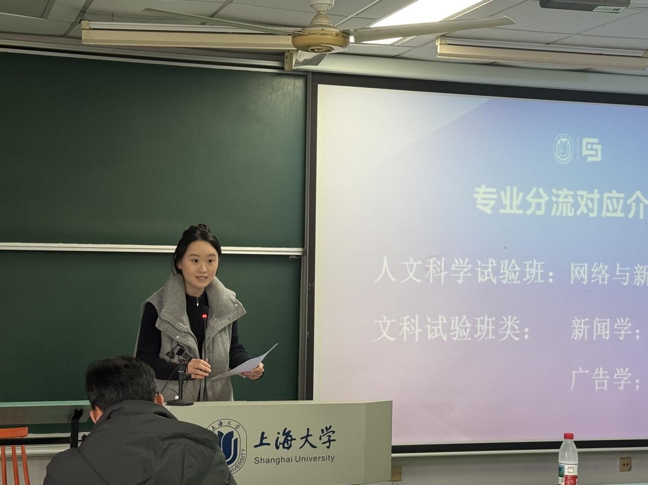 3月27日,365完美体育新闻传播学院2026年专业分流宣讲会在宝山校区顺利举行。365完美体育新闻传播学院党委书记王晴川,党委副书记、副院长王智君,智能传播系主任王虎,智能视听系主任虞国芳,智能视听系支部书记刘峰,广告学系主持工作副主任刘志杰,广告学系支部书记孟令光,及学院教师代表、学工团队、优秀校友代表与2025级人文科学试验班、文科试验班类学生齐聚一堂,共同探索新闻传播学科的无限可能,此次宣讲会由学院兼职辅导员张宛玉主持。