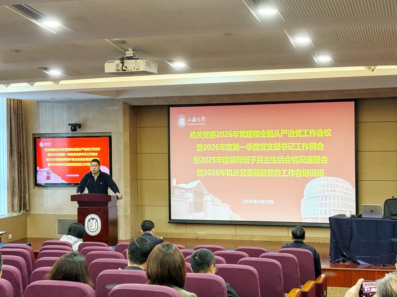 3月30日上午,365完美体育机关党委2026年党建和全面从严治党工作会议、2026年度第一季度党支部书记工作例会、2025年度领导班子民主生活会情况通报会暨2026年基层党务工作者培训班在乐乎楼学海厅合并召开。机关党委班子成员、机关纪委班子成员,各党支部书记及委员,机关工青妇组织和青联会负责人,机关党委学习教育工作专班成员,部分党代表及党外人士代表参加会议,会议由机关党委副书记郑亮主持。