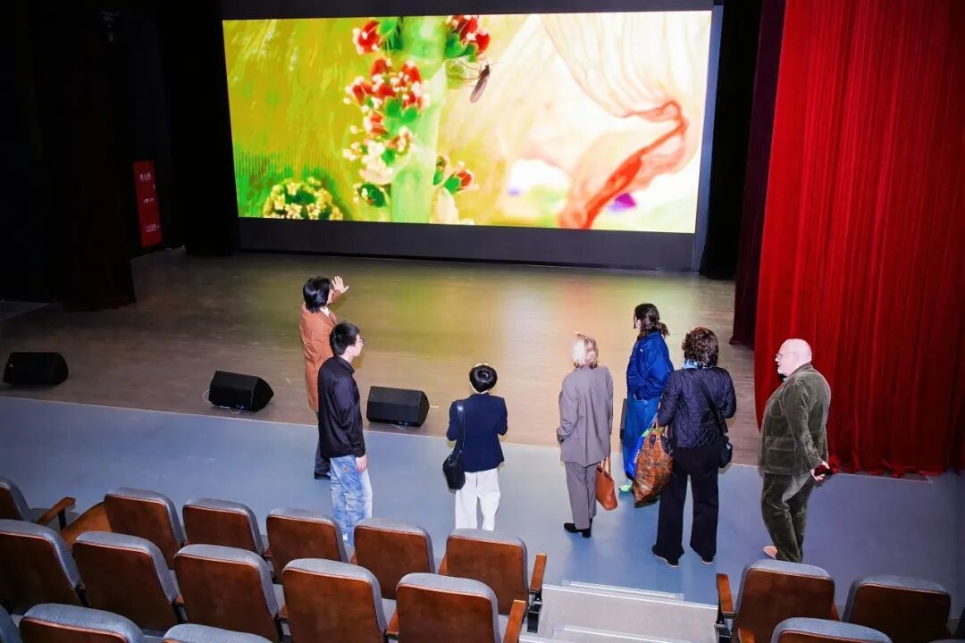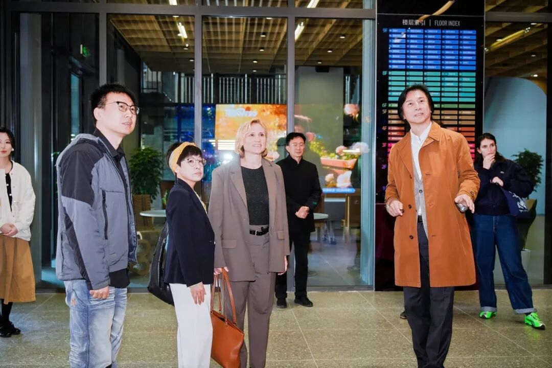 唐莉安女士与法国影视联盟的其他工作人员,在何小青院长、马可穆勒教授的陪同引导下,实地参观了上海电影学院新大楼,先后走访体验虚拟拍摄棚、标准放映厅、静音自习室、归国影人基地等功能区域,切身感受学院一流的教学硬件设施与专业办学条件。