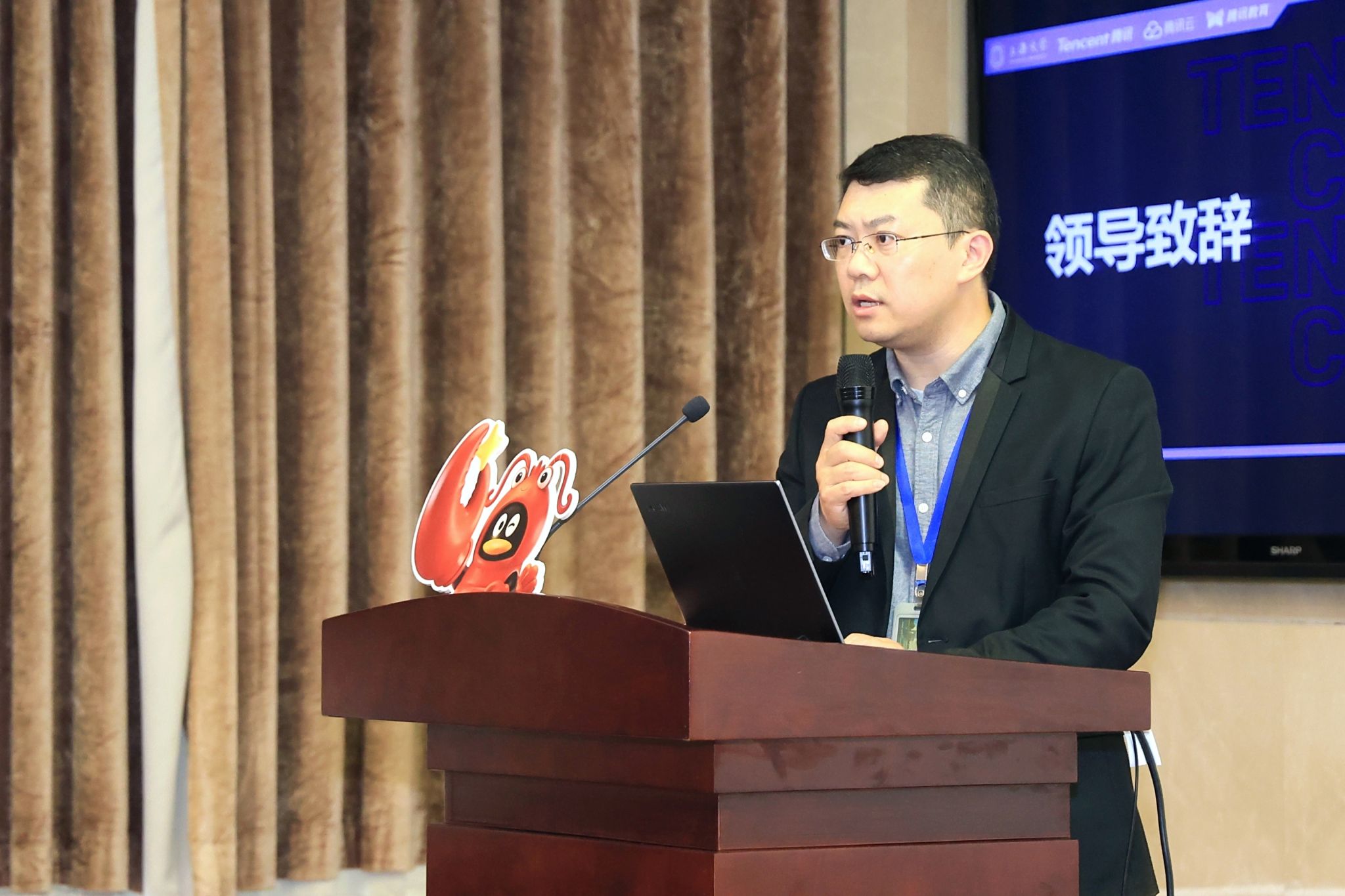 未来技术学院副院长岳涛在致辞中表示,人工智能是引领新一轮科技革命和产业变革的核心驱动力。他希望同学们积极探索,为未来投身科技创新打下坚实基础。他感谢腾讯教育带来前沿技术资源,期待双方在课程共建、师资培训、科研协同等方面深化合作。