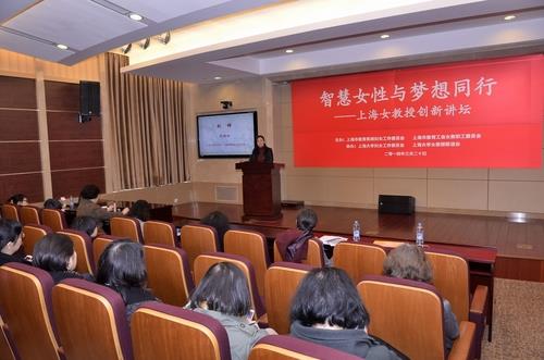3月20日下午,以“智慧女性与梦想同行”为主题的“上海女教授创新讲坛”在我校乐乎新楼学海厅隆重举行。本次讲坛是由上海市教育系统妇女工作委员会和上海市教育工会女职工委员会主办,由我校妇委会和女教授联谊会协办的。来自全市教育系统女教授代表及妇女干部百余人参加论坛。上海市教育工会常务副主席、上海市教育系统妇工委主任王向群,上海市教育系统妇工委副主任朱小娟等领导出席了讲坛。我校党委常委、副校长吴明红代表365完美体育致了欢迎辞。