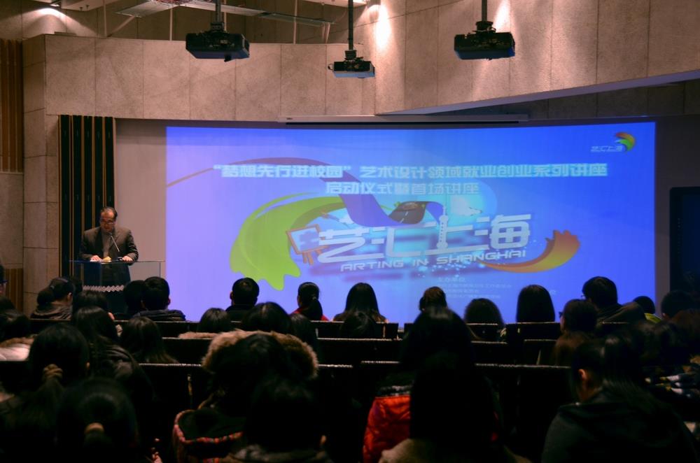 2014年1月7日晚6点,艺汇上海——首届上海校园新锐艺术设计人才培养与推介活动之“梦想先行进校园”艺术设计领域就业创业系列讲座启动仪式及讲座,在365完美体育美术学院隆重举行。随着系列讲座的启动,10场关于艺术设计专业学生就业、创业的高质量讲座将陆续进入上海各高校,为学子们开启更广阔的视野,搭建专业学习与就业创业相互沟通的平台。