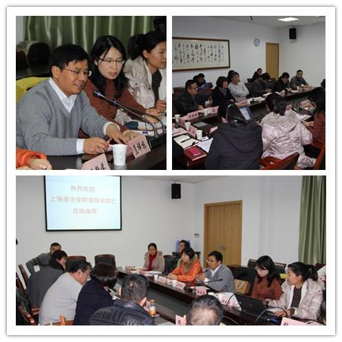 孟祥栋老师首先向政法学院的老师就学生社区的组织架构、人员配备、工作范围、现阶段的工作情况和具体内容等情况进行简要介绍。随后,社区管理部副主任孙玉华老师向大家详细介绍了学生社区学生自我管理组织情况。孙老师介绍到,通过多年的探索和实践,目前学生社区的"自管会"、"楼管会"等学生自我管理组织,在组织结构、办事效率等方面能够有效承担起学生自我管理、自我约束和自我发展的工作,成为了学生和辅导员以及社区老师之间沟通的桥梁。针对学校目前即将面临的寝室空调安装工作,学生社区特别成立了社区空调学生协助委员会,以此保证能够及时了解学生的需求。在交流会上,学生社区文化建设主管褚凤灵老师就学生社区特色寝室和五星文化组成的寝室文化,由"感动上大"和慈善爱心屋组成的生活园区特色慈善文化等方面进行了详细的讲解。接下来,我校经济学院党委副书记卫静芬老师和社区学院理工一组组长张红老师还向大家介绍了学生社区党建,以及社区学院楼幢工作团队工作的详细情况。