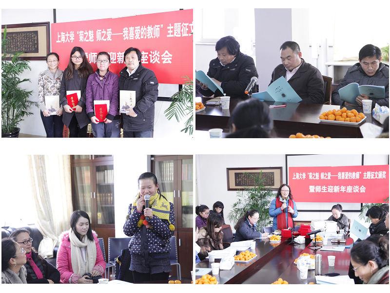 岁末天寒,12月27日下午B401会议室却是暖意融融。“菊之魅 师之爱——我喜爱的上大老师”征文颁奖暨迎新年座谈会在此举办。