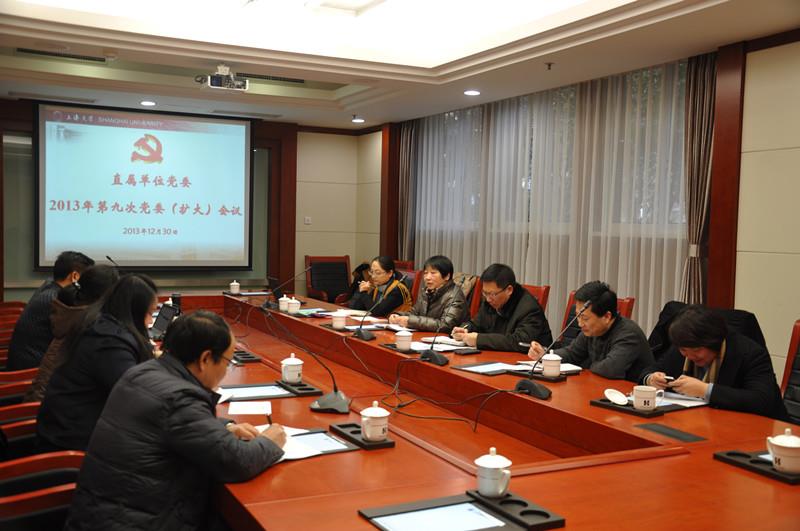 12月30日下午,直属单位党委在延长校区乐乎楼1号会议室召开2013年第九次党委(扩大)会议,讨论部署近期工作,开展年度工作交流。会议由直属单位党委书记陆翠兰主持,直属单位党委委员及所属单位负责同志参加了会议。