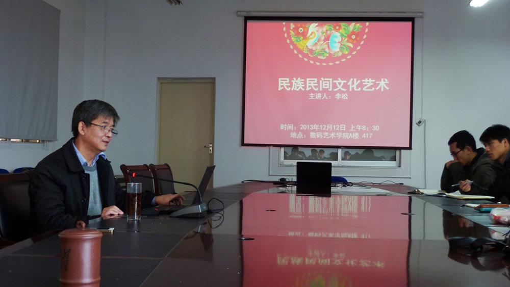 2013年12月12日上午,文化部民族民间文艺发展中心主任李松在嘉定校区数码A楼417会议室做了题为“民族民间文化艺术”的讲座。数码艺术学院院长仲星明教授主持讲座,学院相关专业教师及研究生聆听了讲座,并与李松主任进行了交流。
