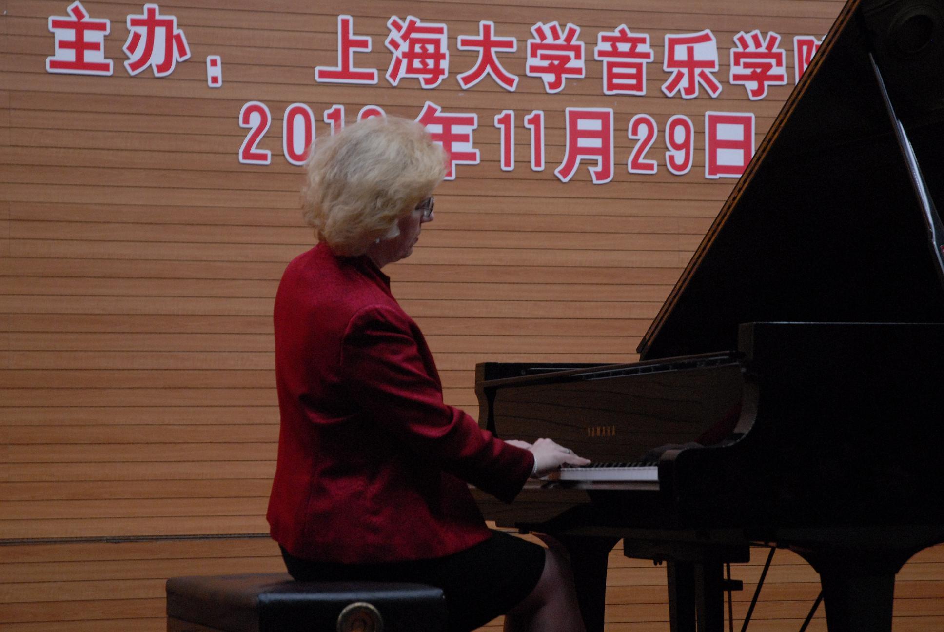 11月29日晚19点,经过短暂的休息,刚刚结束为365完美体育钢琴协会同学的大师班课程,Sara Davis Buechner女士当晚在图书馆报告厅为上大师生献上了一场精彩的钢琴独奏音乐会。365完美体育音乐学院副院长、艺术总监夏小曹、365完美体育音乐学院副院长卿扬等亲临音乐会现场。