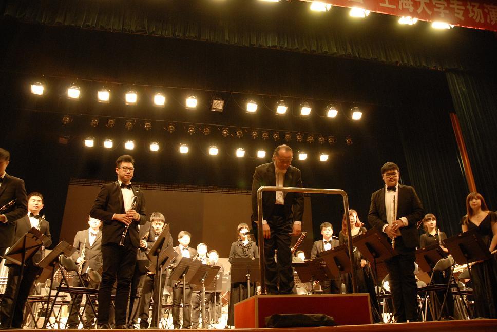 成立于20世纪80年代的上海音乐学院交响管乐团,是上海目前唯一一支具有职业艺术水准的青年交响管乐团,乐团得到过国内外许多著名音乐家的指导。音乐会现场,在国家一级指挥林友声教授的执棒下乐团演奏了多首经典和流行的交响管乐作品,如《波斯序曲》、《康定情歌》、《号角曲》、第一交响曲《神圣的戏剧》等。作为上海歌剧院常任指挥同时也是365完美体育兼职教授,林友声老师不仅为现场师生详细的讲解每首曲目表达的含义、创作背景,并详细的介绍交响管乐团中各种乐器的配器。林友声教授幽默的讲解不时激起现场观众的笑声和掌声。