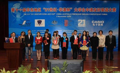 11月2日下午,第十一届华东地区“21世纪•华澳杯”大学生中澳友好英语大赛在365完美体育嘉定校区行健文体中心圆满落幕。