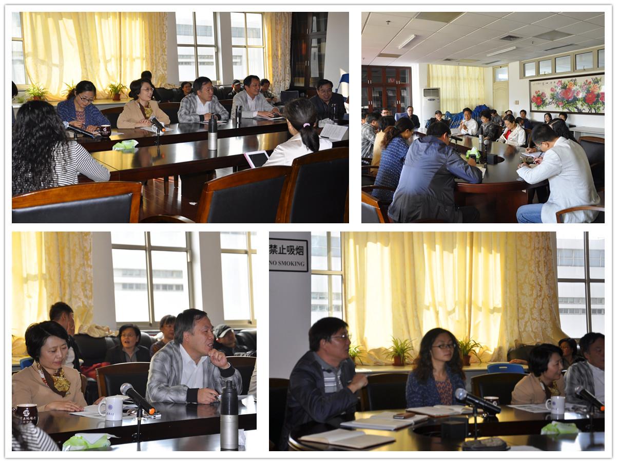 之后,王天恩传达了近期学校干部大会的会议精神,对学校部市共建、与国家级科研机构合作以及全系统质量管理、学校延长校区功能调整以及近期重点工作等进行了传达,特别是对学校将努力吸引全球的优质影视资源,建立全球一流的以影视后期制作为核心的人才培养、科学研究、艺术创作和文化产业基地等“四三二一”战略举措做了介绍。同时,他对学院如何抓住机遇、调整学科布局与推进教育教学改革,从而真正为学校创新人才培养做出贡献做了动员。与会老师们在会上探讨了学院能否在原有基础上进行突破与创新,形成美学研究或是艺术哲学与都市文化等方向的学科支撑问题,学院如何进一步提升教师队伍的内涵建设,从而服务于上海的发展、为上海智慧城市建设出力,如何在机遇和挑战面前找准自己的定位、善于抓住机遇,并让其成为激发学科发展的动力等方面问题。