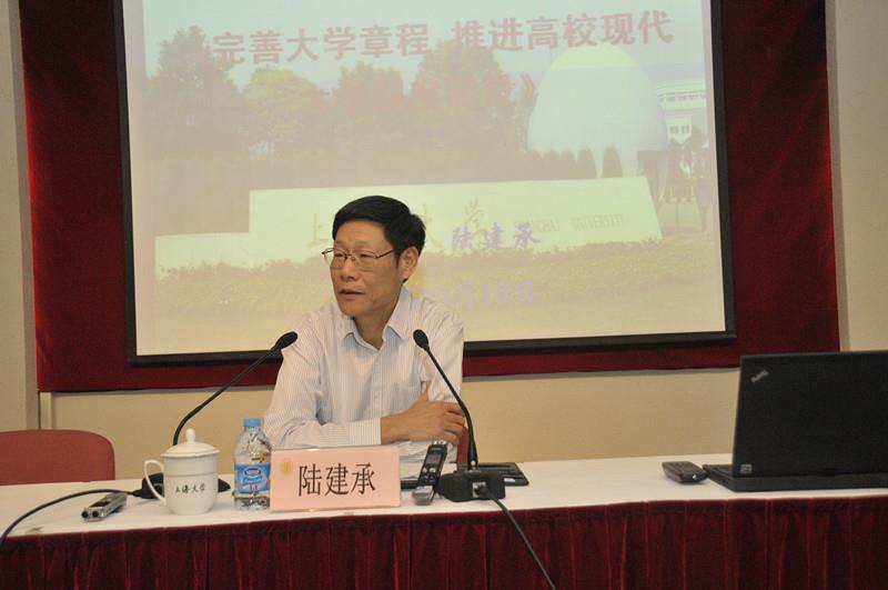 讲座中,陆建承从章程的起源、高校章程的历史、高校章程制定中的重要问题等方面展开介绍,阐述了大学章程对建设现代大学制度的重要意义。他提出,建立现代大学制度的基础在于完善大学治理结构,即对外应当明确高校与举办者的关系,保障办学自主权;对内应当厘清管理中不同的权力(利)界限,提高决策效率。同时,结合教育部新公布的《高等教育法》(征求意见稿)等文件及六所已通过审核的教育部直属高校章程,对我校章程草案提出了若干完善建议。报告是我校在章程制定推进工作中的一次学习安排,受到参会人员的一致好评。 我校于今年9月10日正式启动章程草案的新一轮推进工作,采取新的工作机制,最大程度地听取机关部处、学院及广大师生的意见与建议,章程制定将于今年年底前完成比较完善的文本,再提交学校最后审定。