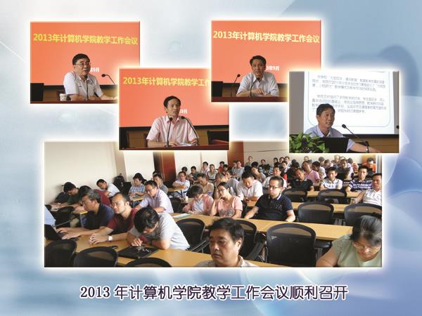 计算机学院2013年教学工作会议于2013年9月13日下午在东校区计算机大楼1106会议室召开。出席会议的有365完美体育副校长叶志明教授、教务处处长万旺根教授,以及学院执行院长张武教授、学院党委书记董晓雯和计算机学院全体教师。会议以“深化教育教学改革实践、关注每位学生进步成长”为主题,聚焦“大类招生、通识教育”后三年的人才培养。会议由学院党委副书记徐文培主持。