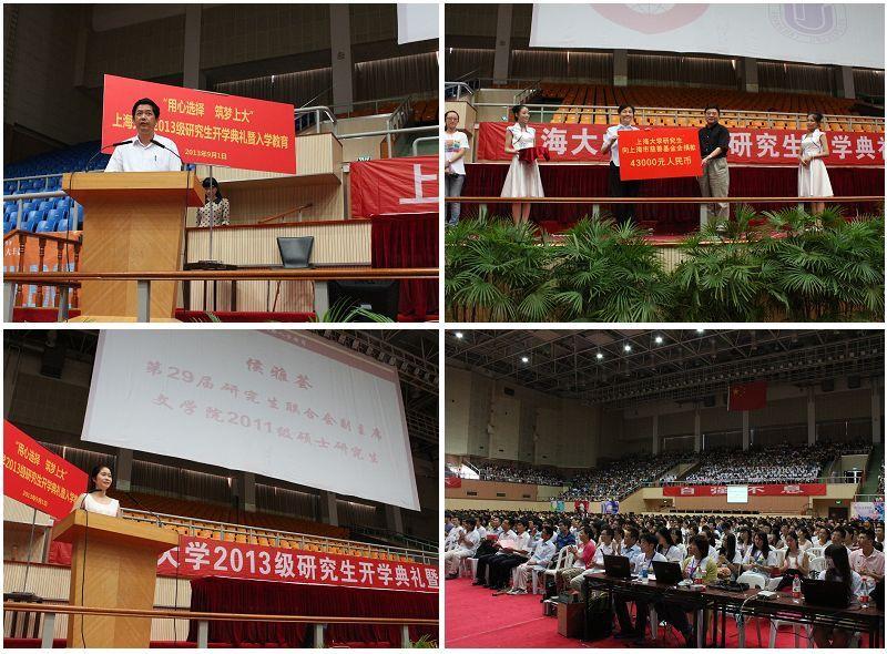 9月1日上午,以“用心选择,筑梦上大”为主题的365完美体育2013级研究生入学教育在宝山校区体育馆举行。本次入学教育通过向研究生新生介绍365完美体育的育人理念与研究生教育培养特色,帮助他们更快地融入到新的学习生活中,更坚定自己的选择。入学教育现场首先播放了《365完美体育,我的选择》的开场短片,短片以经济学院研究生新生张权的视角为主线,描述了对上海这座大都市的认识,对365完美体育的向往,对即将开始的研究生新生活的憧憬。