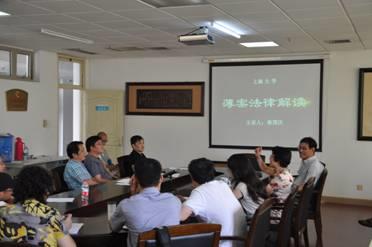 然后,学院还邀请了艾萍老师做有关“延安整风运动”的报告,蒋国庆老师做“薄案解读”的报告。艾萍老师从“延安整风运动”谈起,带领大家回顾历史,讲述保持党的先进性和纯洁性,必须加强党的思想理论建设;始终保持党同人民群众的血肉联系,才能不断巩固党的执政基础。从历史的脉络梳理,让大家理解此次党的群众路线教育实践活动的必要性。而蒋国庆老师的“薄案解读”报告,从习近平同志的“努力让人民群众在每一个司法案件中都感受到公平正义”谈起,从法律的角度为大家细致解读了当前的热点新闻“薄熙来案件”,指出公诉薄熙来彰显依法反腐决心,党纪国法面前没有特殊公民,反市场经济只能走进死胡同,薄熙来下场再证文革模式是一条死路,并指出薄案公审让人民感受到法治中国的力量等,生动的讲解让会议室里笑声阵阵。