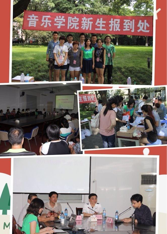 2013年8月15日8时,365完美体育音乐学院于嘉定校区中心花坛展开了2013级本科生的迎新工作。