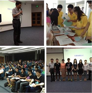 王建华老师首先致开幕词,他向所有新生表示热烈的欢迎,并亲切询问在场同学对于进入经院后的打算,同时祝愿所有新生都能在经济学院获得新知,获得成长。紧接着,来自12级的两位新生通过一首诗朗诵《经济学院,我如约而至》表达了他们对进入经济学院的喜悦和对未来三年的憧憬。之后,10级学生郭翔宇和12级新生杨琦同学分别作为老、新生代表上台发言。郭翔宇同学着重向新生传授经验,并提醒新生“多尝试,要坚持”,杨琦同学则与大家一同分享了自己先前为进入经济学院所作出的努力以及今后面对各种机遇和挑战时的打算。随后院旗授予仪式和院徽佩戴仪式将本场活动推向了高潮。当记载着荣耀与辉煌的院旗在新生代表手中挥舞时,全场新生情绪激昂,掌声雷动,这标志着他们将继承和发扬学校、学院的优良传统,向着未来,扬帆起航。最后,全体新生在领誓人的带领下集体宣誓,为成为一名优秀的经济学子,为实现祖国更加美好的明天而努力奋斗。