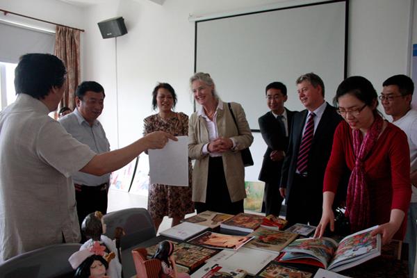 副校长吴松教授首先向Christina Slade校长一行介绍了学校的基本情况和发展现状,并就双方在教师互访、学生交换,特别是与数码艺术学院的各方面合作进行了探讨与交流。随后,Christina Slade校长一行在吴松副校长和仲星明院长的陪同下参观了数码艺术学院2013届毕业生毕业设计作品展览、学生数码画作品展、2013大类招生学生课堂、上海市级非物质文化遗产——擦笔水彩年画技法研究中心、产品设计与造型工作室等。毕业生作品、学生的数码画和各工作室所从事的教学研究给Christina Slade校长一行留下了深刻的印象。