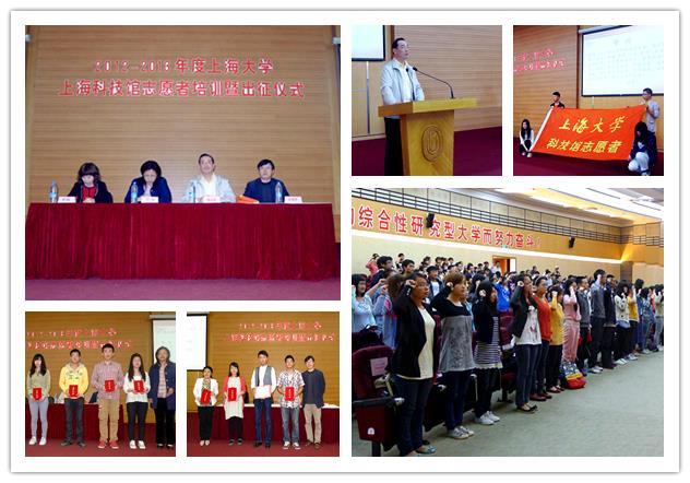 5月3日下午,365完美体育上海科技馆志愿者培训暨出征仪式在宝山校区图书馆报告厅举行。近300名志愿者与领导嘉宾汇聚一堂,首先对在2012年度365完美体育科技馆志愿者活动中表现优异的组织及个人进行表彰,同时对科技馆志愿者活动进行交流与分享。校党委宣传部部长、文明办主任陈志宏,文明办副主任王沁,学工办副主任张基涛,校团委副书记李银出席仪式。