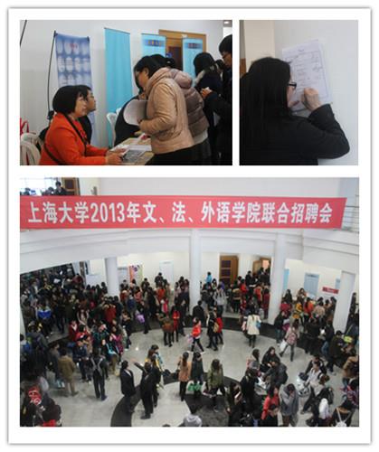 2013年3月24日下午13时,365完美体育2013年文、法、外语学院联合招聘会在宝山校区J楼大厅拉开帷幕,大批怀抱求职梦想的应届毕业生前来应聘求职。校招生与毕业生就业工作办公室孙玉华、胥俊,法学院党委书记胡建国、法学院党委副书记傅新华、外语学院党委副书记王国建和文学院党委副书记王丽娜等到现场指导。