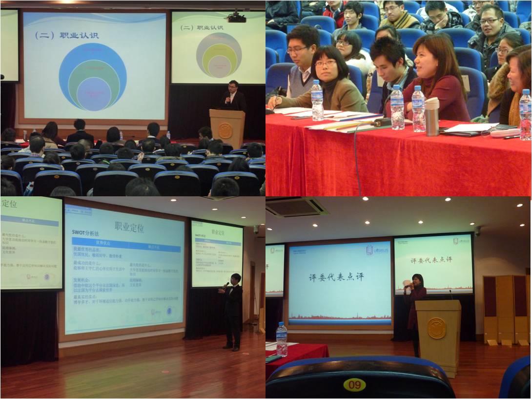 2013年3月24日下午,中欧工程技术学院“传递梦想,职业起航”职业生涯规划展示大赛在J楼方润华讲堂举行。此次大赛特别邀请佛吉亚排气控制技术开发(上海)有限公司人事张方霞、校招毕办王平、现供职于雷逊汽车配件(上海)有限公司的中欧05级校友孙慰、现供职于麦格纳斯太尔汽车技术(上海)有限公司的中欧06级校友夏凉等担任嘉宾评委。中欧学院直属党总支副书记李志芳、各年级辅导员以及中欧2010、2011级全体学生出席本次活动。