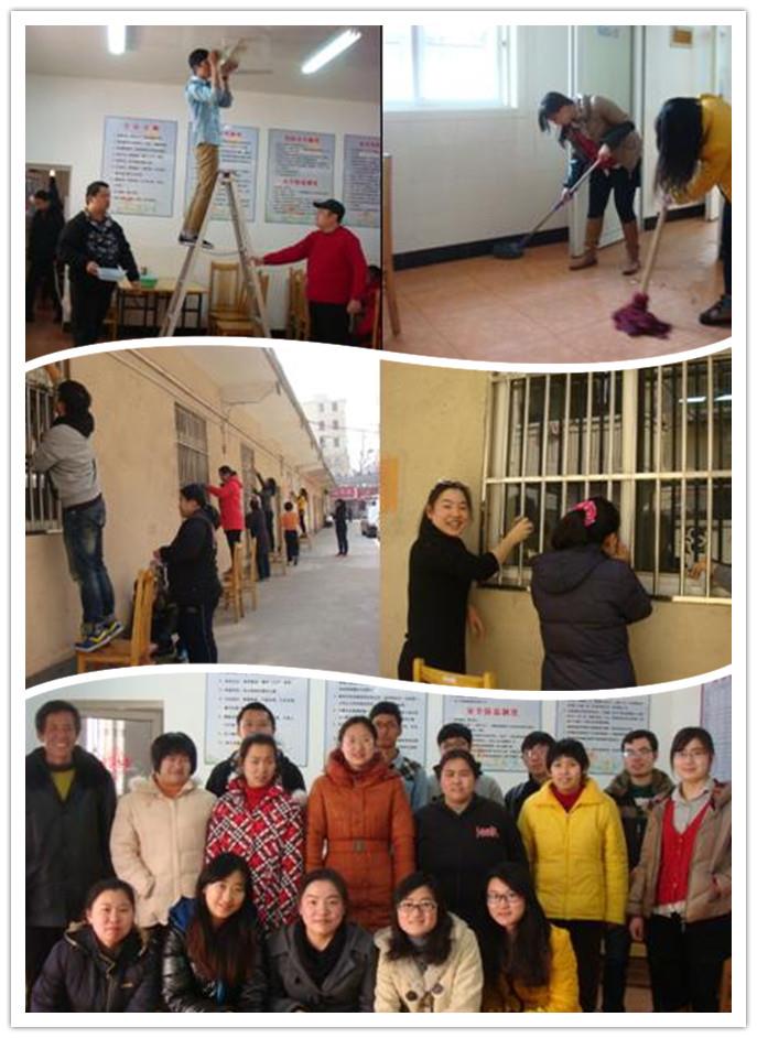 为了使清扫开展得更加顺利,义工队队员和阳光之家的特殊学员们结对,组成了一个个小组,一搭一档的在工作人员的指导下开始劳动。你扫地来我擦窗,我拖地来你帮忙,同学们和这些特殊学员们一起有条不紊地忙碌着。阳光下是大家的温馨的笑脸,默契的配合与暖暖的情谊。