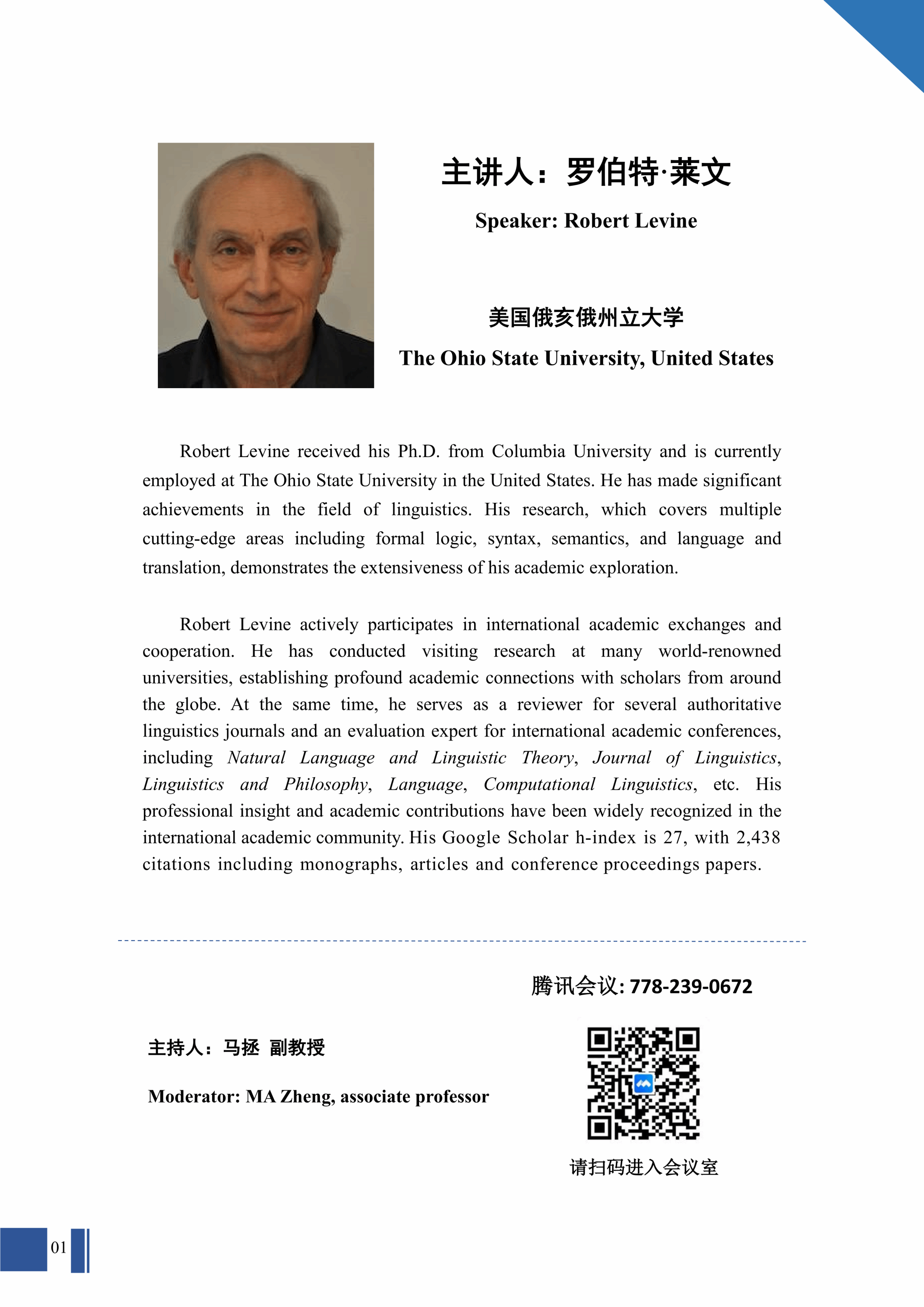 365完美体育外国专家大讲堂:美国俄亥俄州立大学Robert Levine教授专题系列讲座