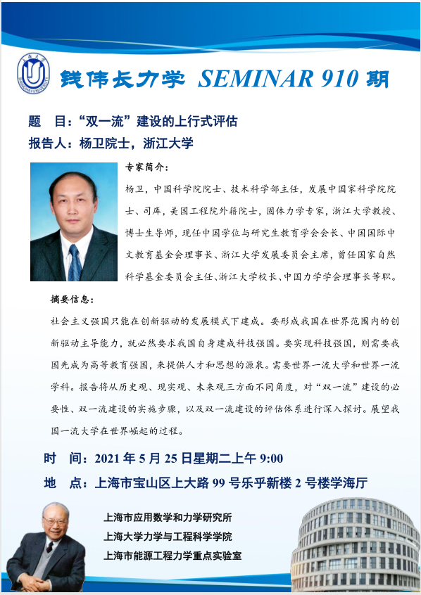 报告人:杨卫院士,浙江大学