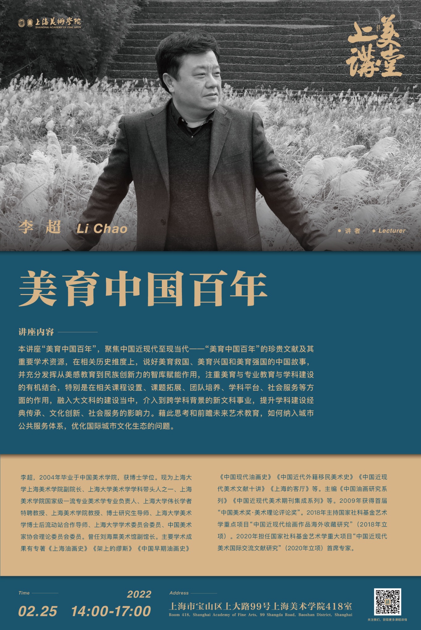 讲座内容:本讲座“美育中国百年”,聚焦中国近现代至现当代——“美育中国百年”的珍贵文献及其重要学术资源,在相关历史维度上,说好美育救国,美育兴国和美育强国的中国故事,并充分发挥从美感教育到民族创新力的智库赋能作用,注重美育与专业教育与学科建设的有机结合,特别是在相关课程设置、课题拓展、团队培养、学科平台、社会服务等方面的作用,融入大文科的建设当中,介入到跨学科背景的新文科事业,提升学科建设经典传承、文化创新、社会服务的影响力。藉此思考和前瞻未来艺术教育,如何纳入城市公共服务体系,优化国际城市文化生态的问题。